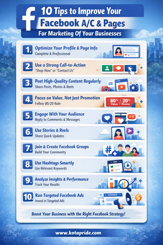 Improving your Facebook account and page doesn’t require a huge budget—just the right strategy and consistency. By optimizing your profile, posting valuable content, and engaging with your audience, you can turn Facebook into a powerful marketing tool for your business.